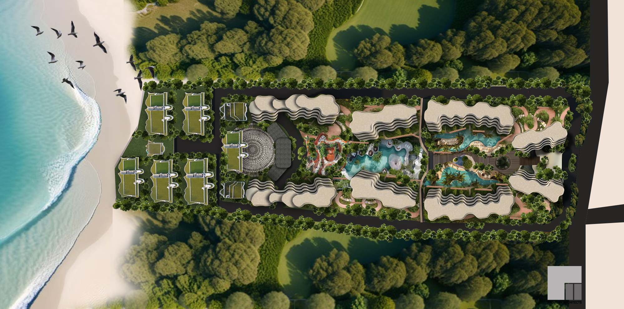 VEDA Longevity Center was internally known as “The Oyster Space” in our design team. This is because the conceptual architecture and environmental design of the project emerges from a philosophical inquiry into the ontology of form, surface, and the interplay between natural and constructed environments. Inspired by the morphology of seashells shaped through time, erosion, and tidal rhythms, the design seeks to embody both tectonic necessity and aesthetic fluidity. The project is located on Bang Saray beachfront, a secluded site positioned in contrast to the restless tourism of Pattaya. It is envisioned as a sanctuary of hospitality, wellbeing, and ecological humanism, designed under the evaluative frameworks of WELL and LEED. Key sustainable strategies include porous facades for natural ventilation, water recycling, green terraces, and Al-driven energy systems, transforming the structure into a living ecological organism rather than inert concrete mass. By translating coastal phenomenology into built form, The Oyster Space represents more than habitation. It is a metaphysical dialogue with nature, crystallizing identity (eidos) through the metaphysics of shell, stone, and sea. Ultimately, the project becomes a poetic locus of hospitality that integrates technology, art, and environmental stewardship into a universal architecture of comfort and sustainability.